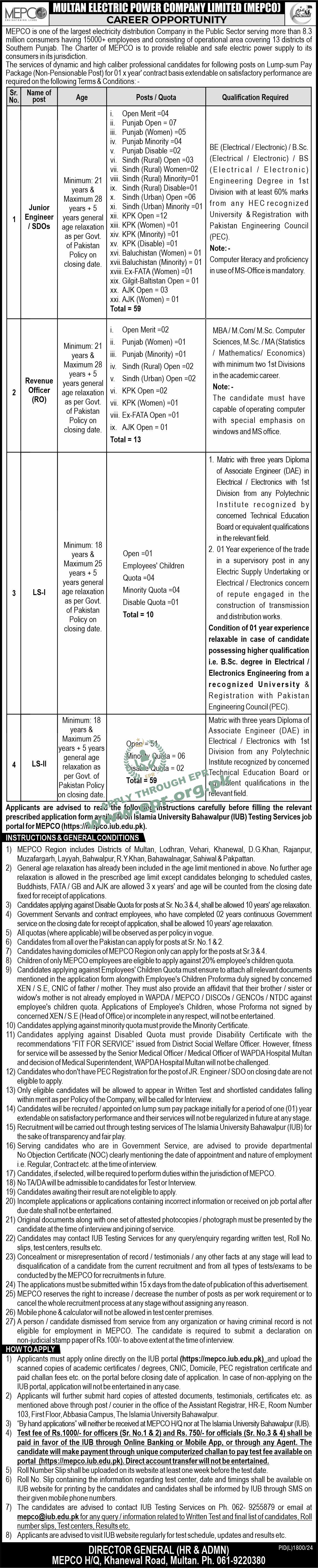 Matric with three years Diploma of Associate Engineer (DAE) in Electrical Electronics with 1st Division from any Polytechnic Institute recognized by concerned Technical Education Board or equivalent qualifications in the relevant field and 01 Year experience of the trade in a supervisory post in any Electric Supply Undertaking or Electrical/Electronics concern of repute engaged in the construction of transmission and distribution works. Condition of 01 year experience relaxable in case of candidate possessing higher qualification i.e. B.Sc. degree in Electrical / Electronics Engineering from a recognized University & Registration with Pakistan Engineering Council (PEC).
