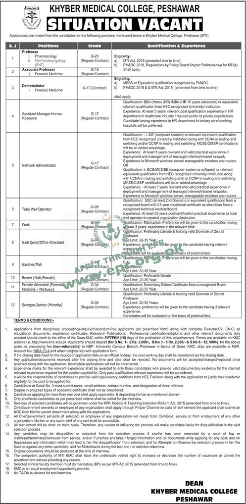 Matriculate. Preference will be given to the candidates having at least 3 years' experience in the relevant field.