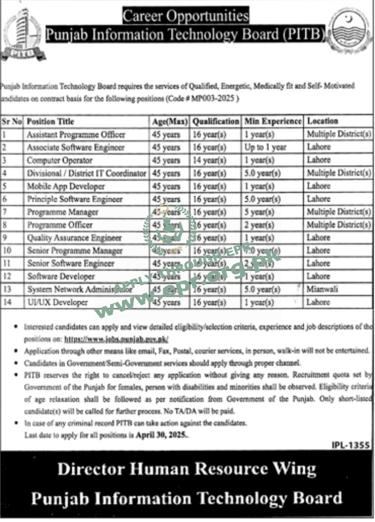 Govt. Dept : PUNJAB INFORMATION TECHNOLOGY BOARD (PITB)