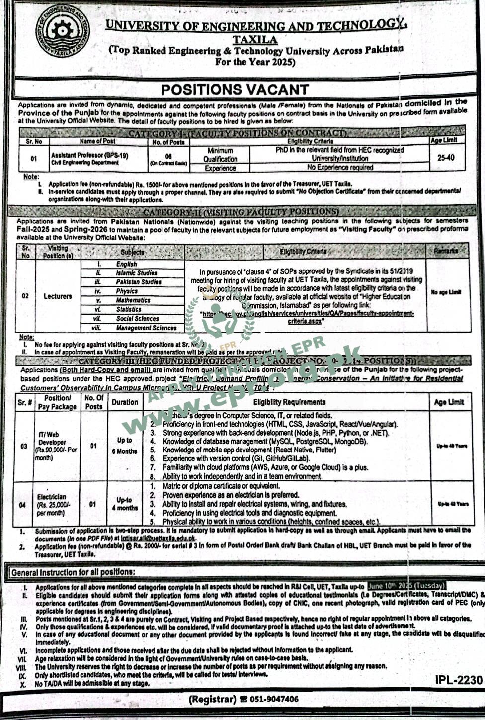 MS / MPhil / equivalent (18 years of education) from an HEC-recognized university/institution in the relevant field.