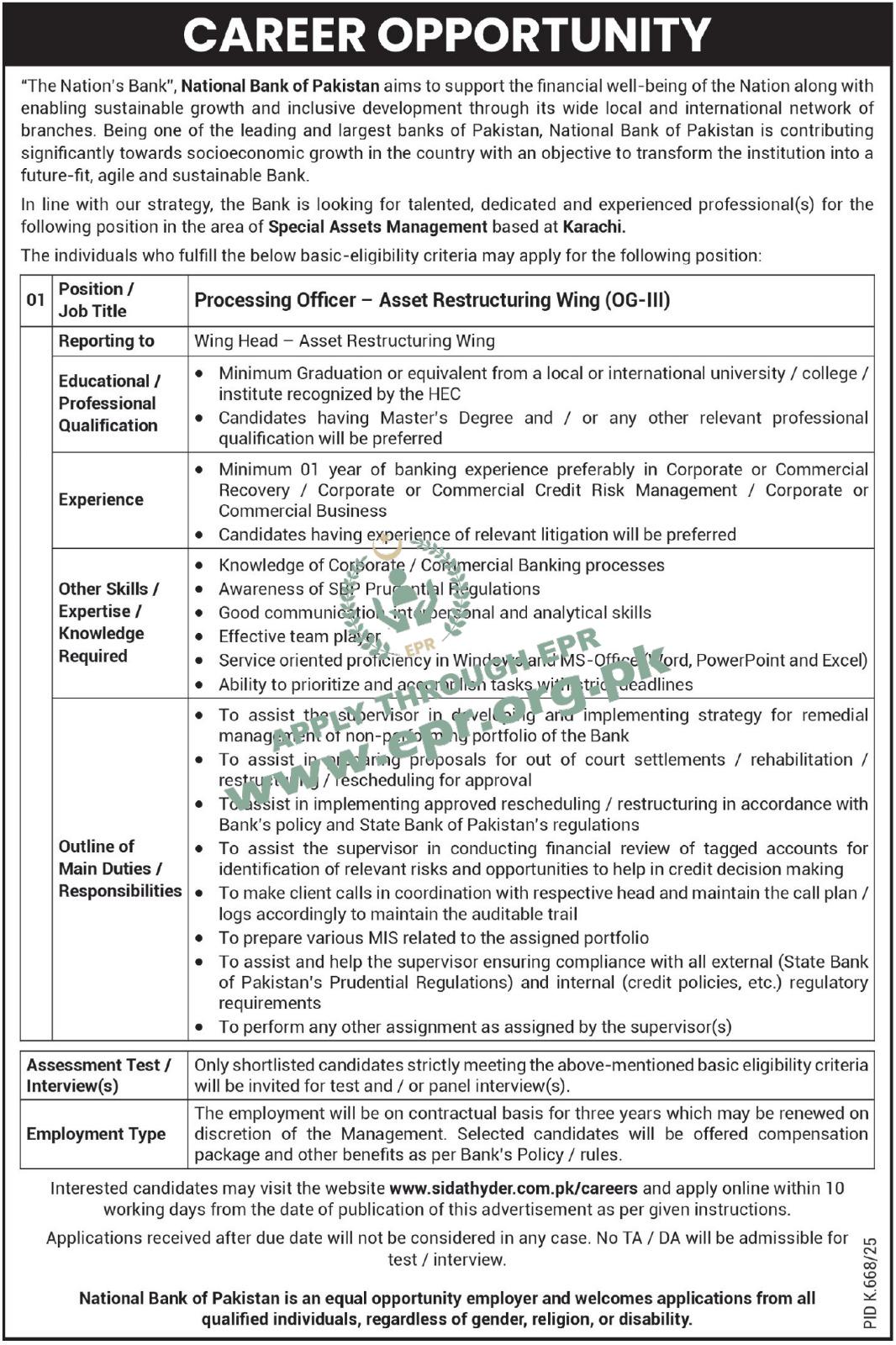• Minimum 01 year of banking experience preferably in Corporate or Commercial Recovery / Corporate or Commercial Credit Risk Management / Corporate or Commercial Business