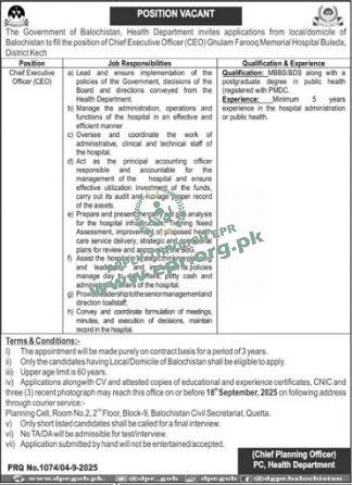 MBBS/BDS along with a postgraduate in public health registered with PMDC.