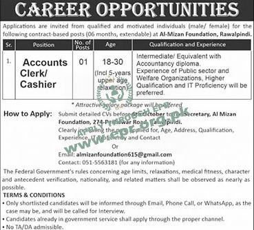 Applications areinvited from qualified and motivated inviduals (male/female) for the following contract-based posts (06 months, extendable) at AL-MIZAN FOUNDATION, RAWALPINDI.