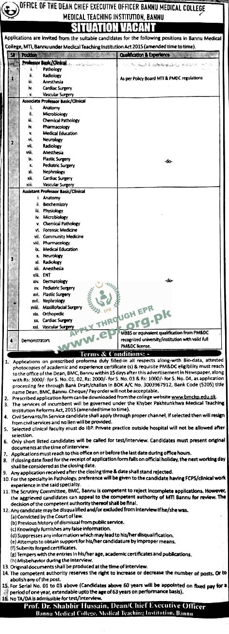 MBBS or equivalent qualifications from PM&DC recognised university/institution with valid full PM&DC license