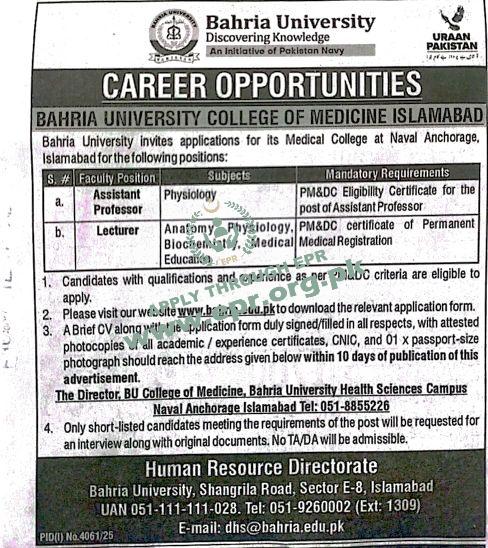 Govt. Dept : Bahria University College of Medicine, Islamabad