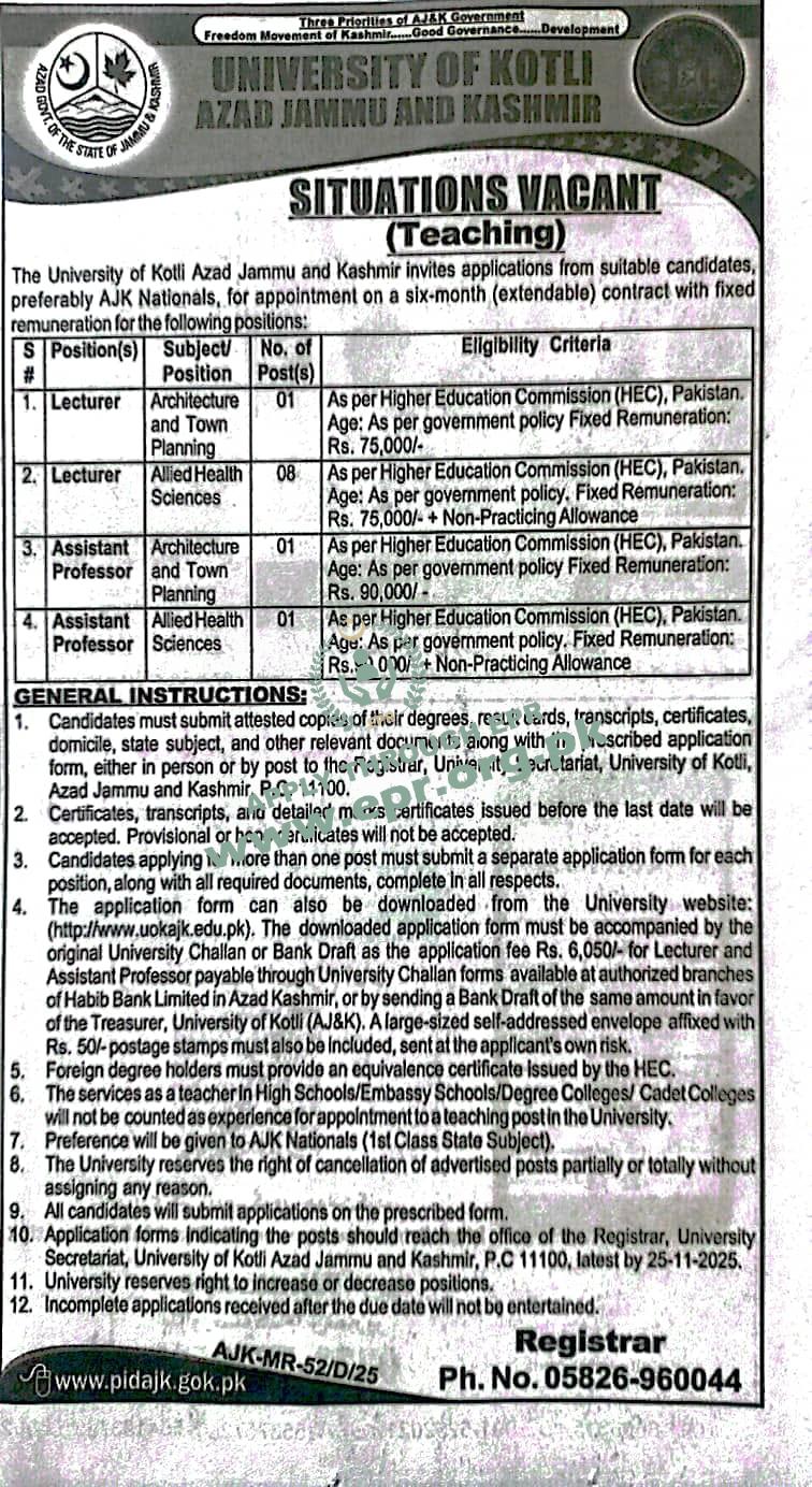 Govt. Dept : University of Kotli