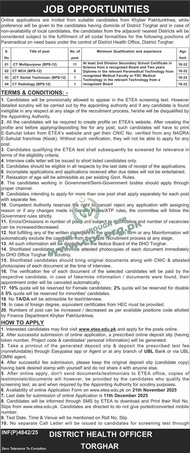 At least 2nd division secondary school certificate in science along with minimum of 2 years diploma in the relevant field