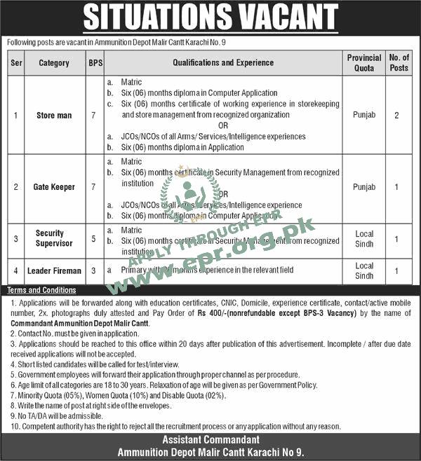 Govt. Dept : Ammunition Depot Malir Cantt Karachi