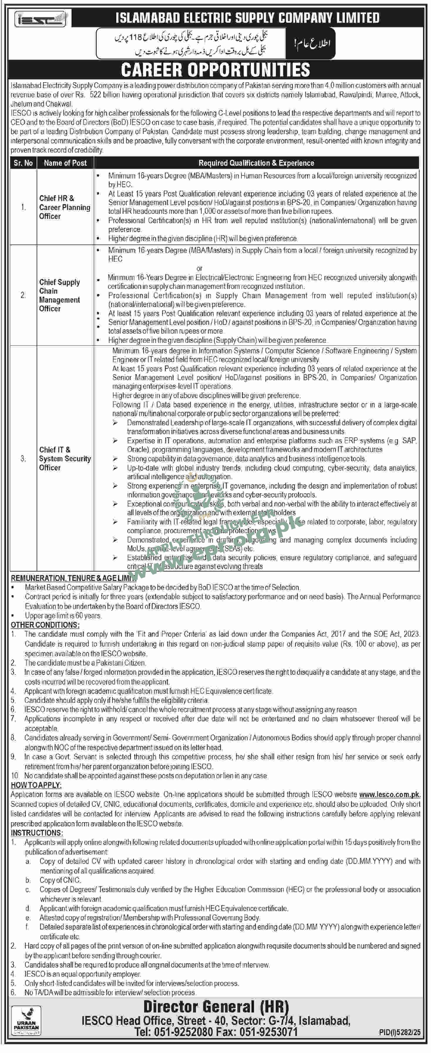 Govt. Dept : Islamabad Electric Supply Company (IESCO)