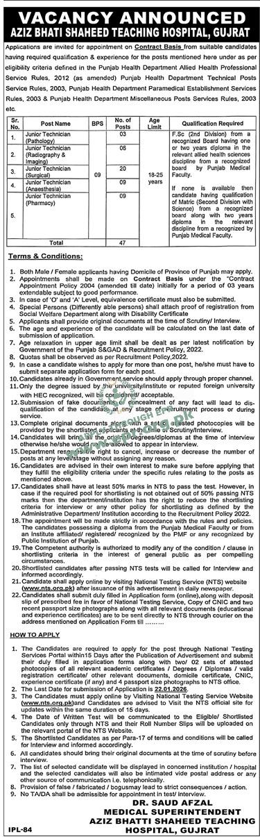 Govt. Dept : Aziz Bhatti Shaheed Teaching Hospital, Gujrat