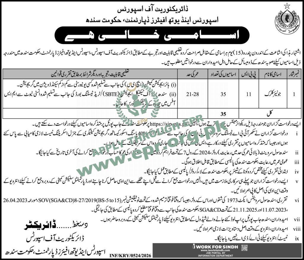 Govt. Dept : Sports & Youth Affairs Department, Sindh