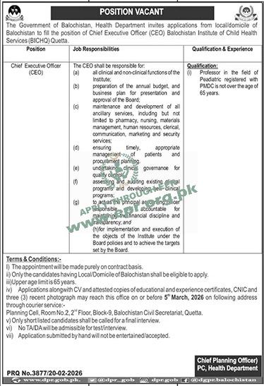 Govt. Dept : Health Department Balochistan