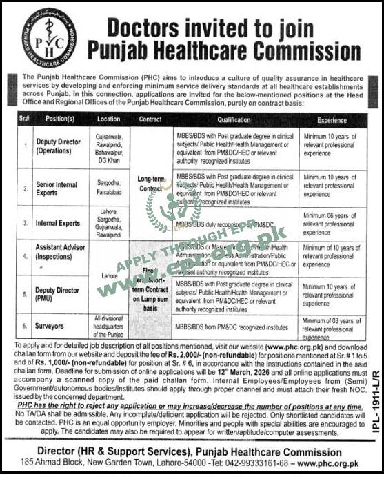 Govt. Dept : PUNJAB HEALTHCARE COMMISSION (PHC)
