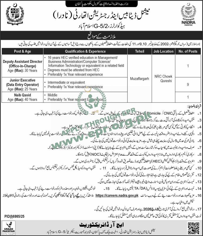 Govt. Dept : National Database & Registration Authority (NADRA)
