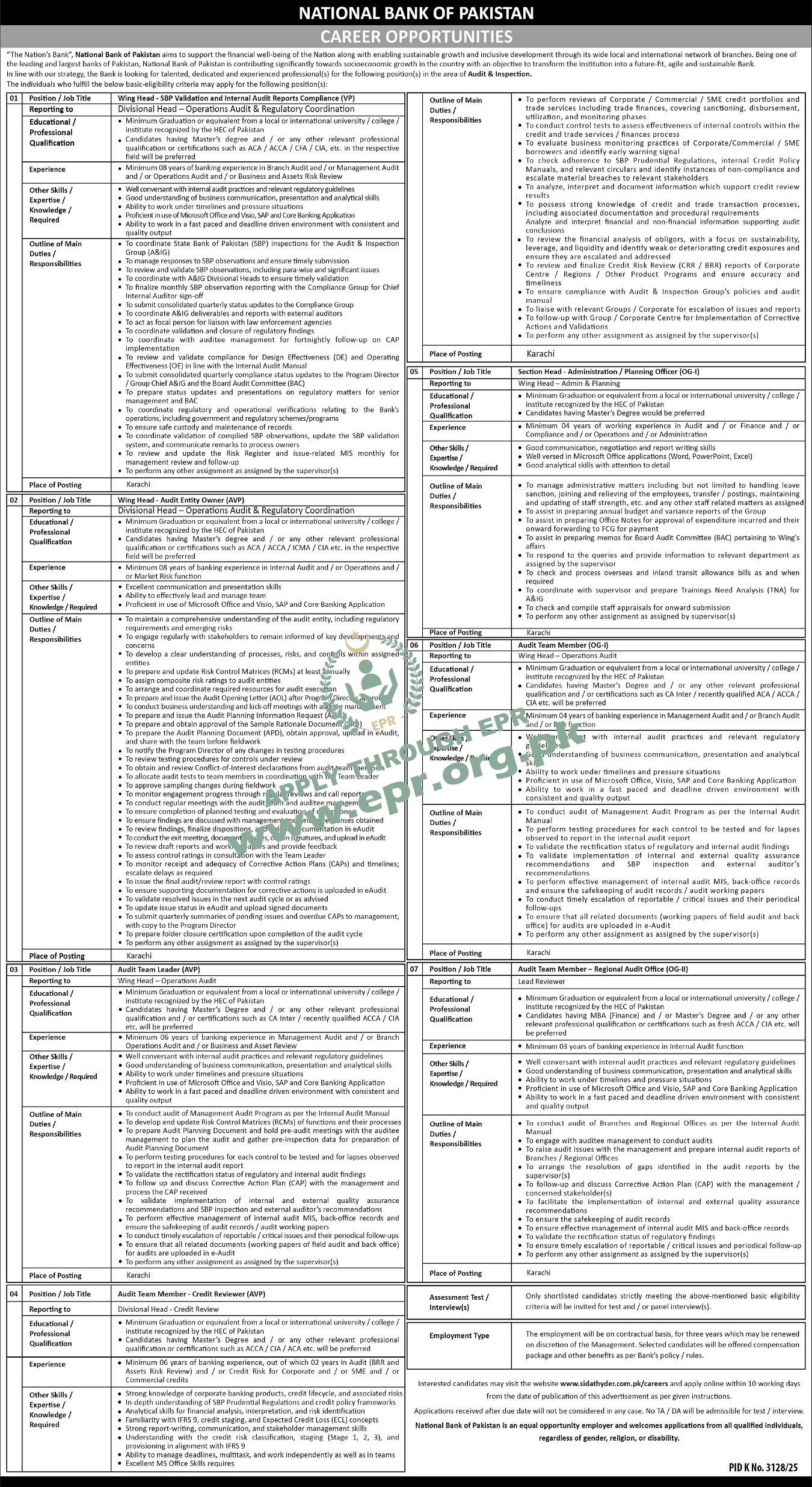Govt. Dept : National Bank of Pakistan (NBP)