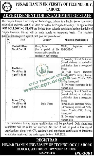 Govt. Dept : Punjab Tianjin University of Technology, Lahore