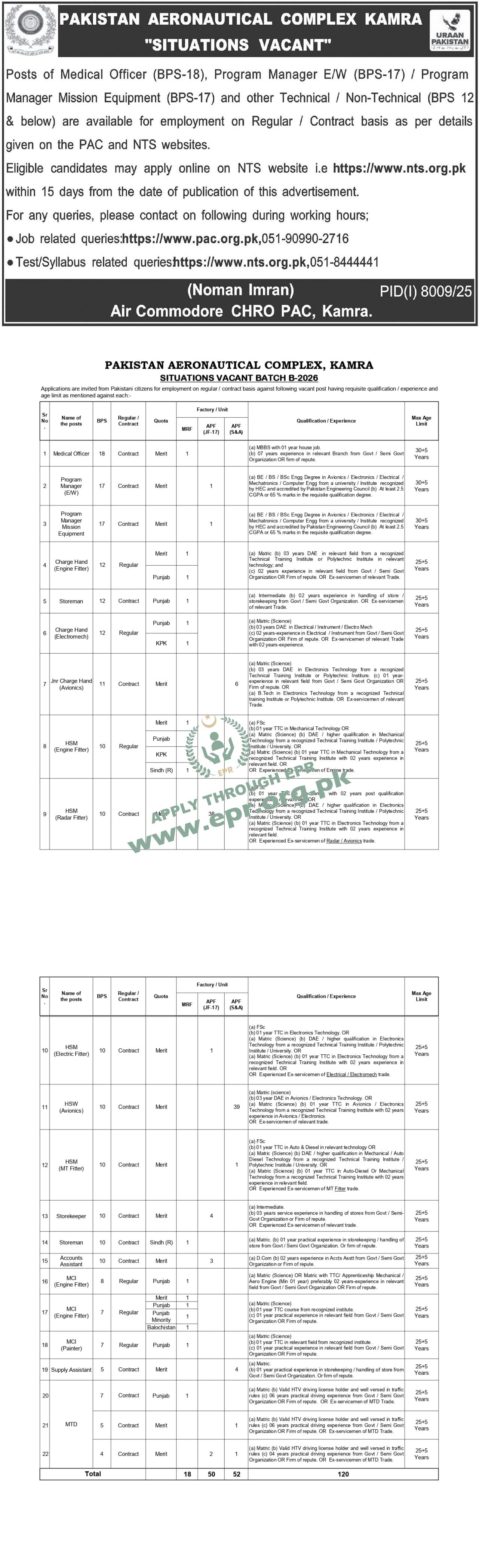 Govt. Dept : PAKISTAN AERONAUTICAL COMPLEX, KAMRA