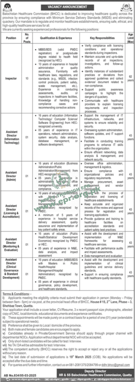 16 years of education (Public Health Statistics/ Development Economics) recognized by PMDC or HEC. 05 years of experience in M&E, data analysis, and impact assessment