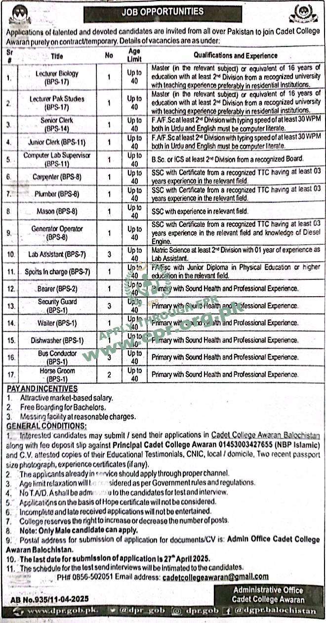 FA/FSC with Junior Diploma in Physical Education or higher education in the relevant field.
