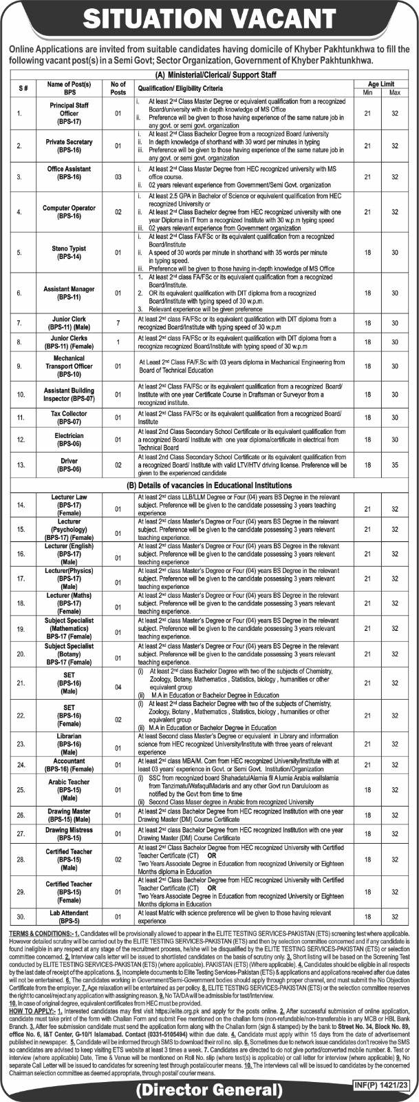 At least 2nd class FA/FSC or its equivalent qualification with DIT diploma from a recognize recognized Board/Institute with typing speed of 30 w.p.m