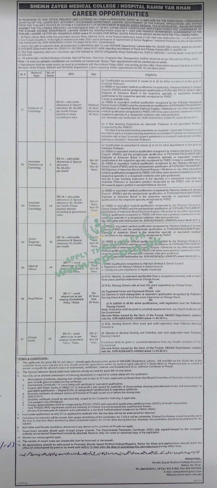 Diploma in General Nursing and Midwifery and valid registration from Pakistan Nursing Council.