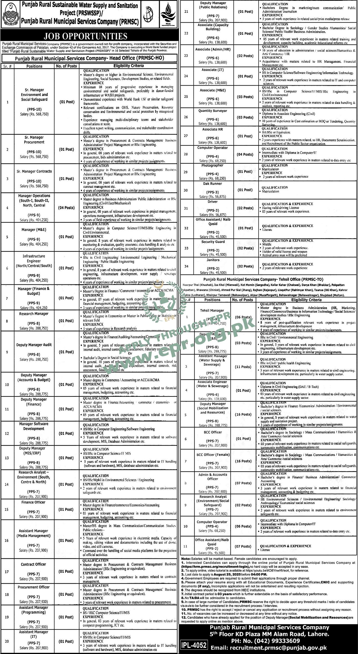 Govt. Dept : PUNJAB RURAL MUNICIPAL SERVICES COMPANY (PRMSC)