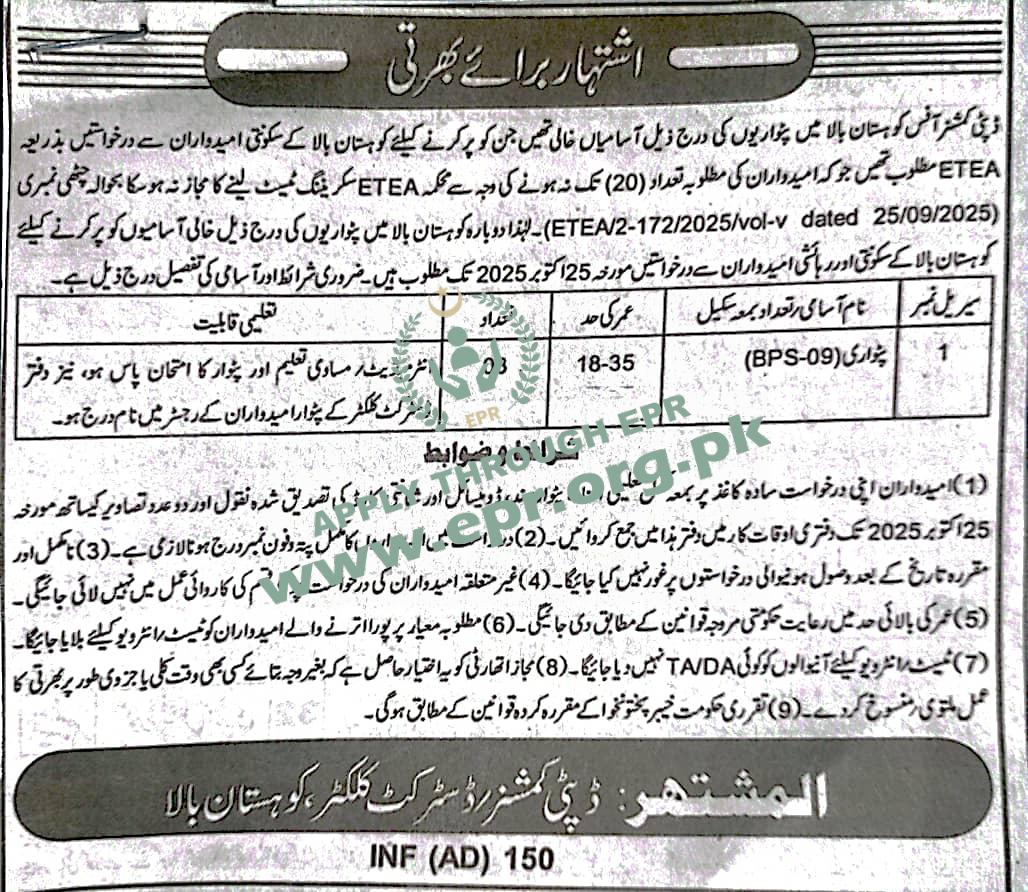 Must have passed the intermediate equivalent education and Patwar examination and be registered in the Patwar Candidates Register of the District Collector's Office.