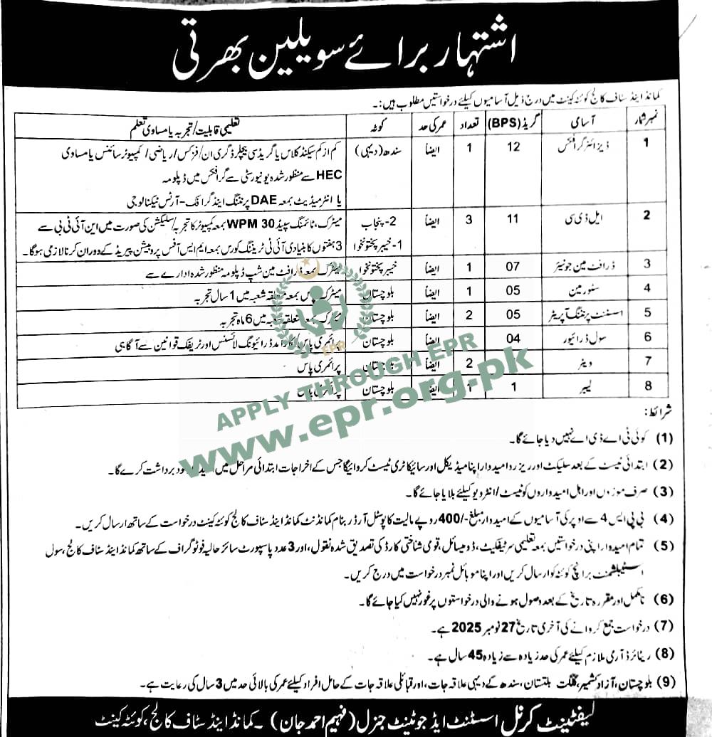 Minimu Matric with 30 wpm typing speed and must be computer literate.