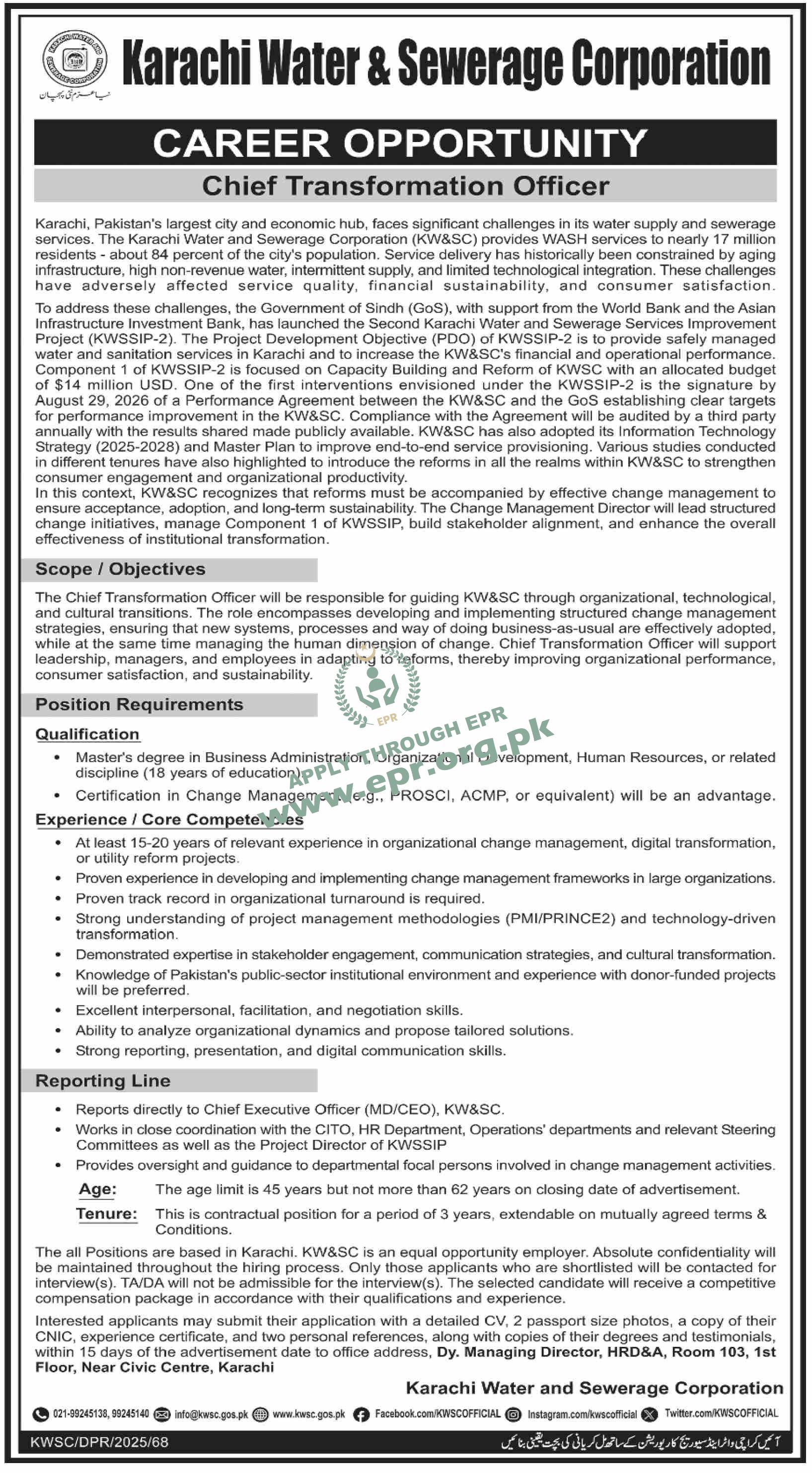 Govt. Dept : Karachi Water & Sewerage Corporation (KW&SC)