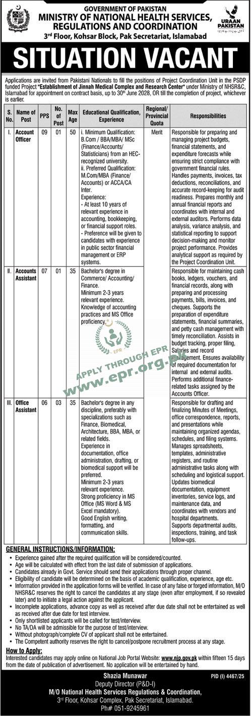 Govt. Dept : Ministry of National Health Services Regulations & Coordination