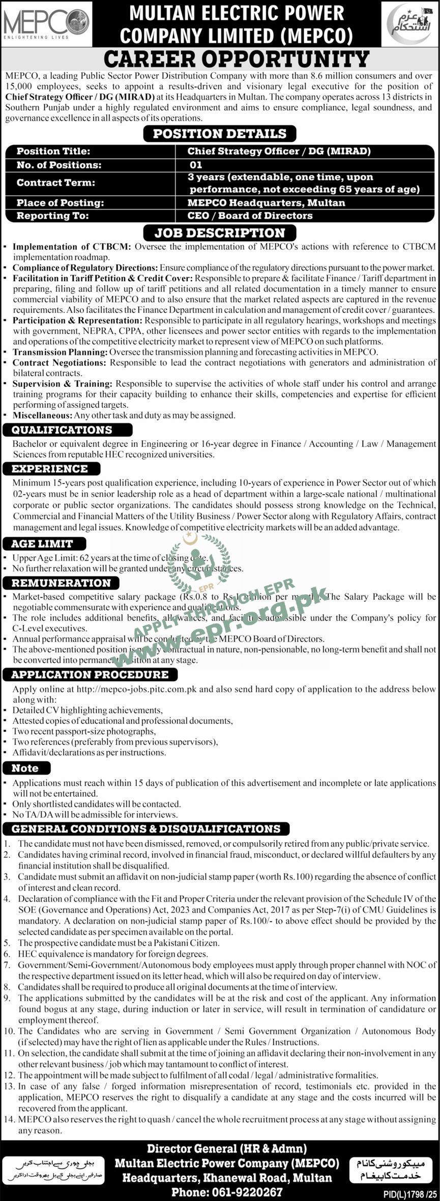 Govt. Dept : Multan Electric Power Company Limited (MEPCO)