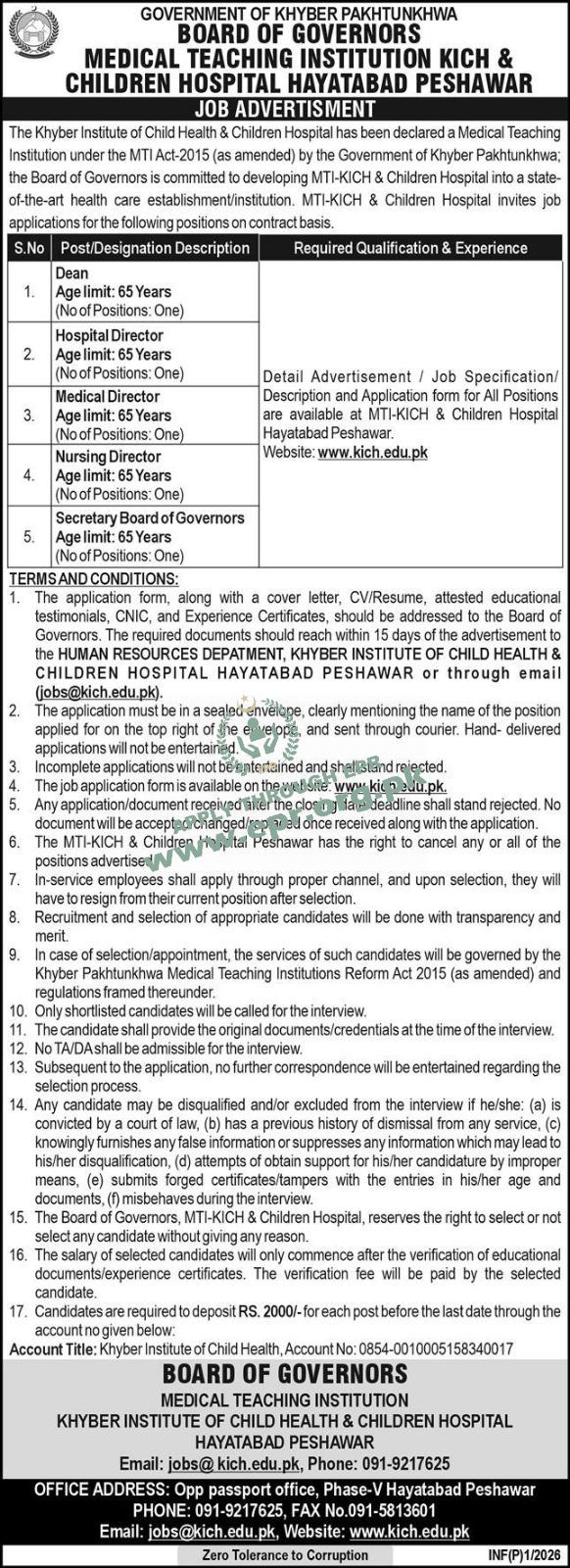 Govt. Dept : Medical Teaching Institution Kich & Children Hospital Hayatabad