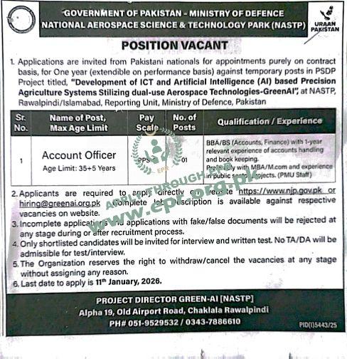 Govt. Dept : National Aerospace Science & Technology Park (NASTP)