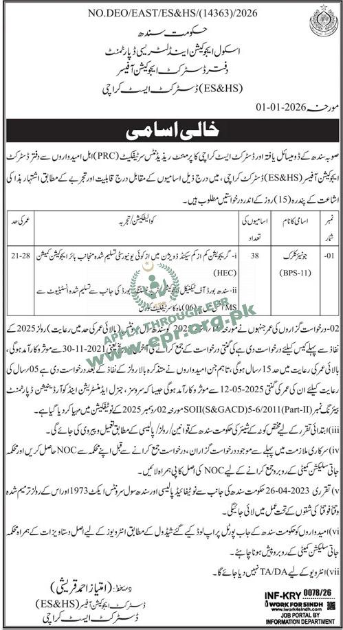 Govt. Dept : DEO (ESHS) East Karachi - School Education & Literacy Department