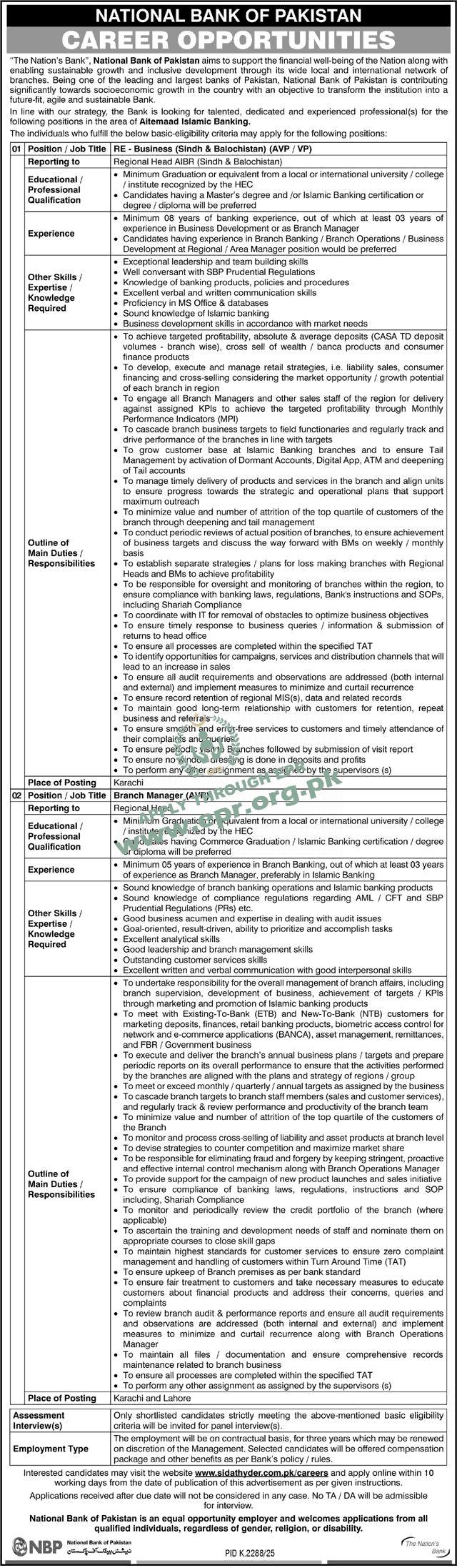 Govt. Dept : National Bank of Pakistan (NBP)