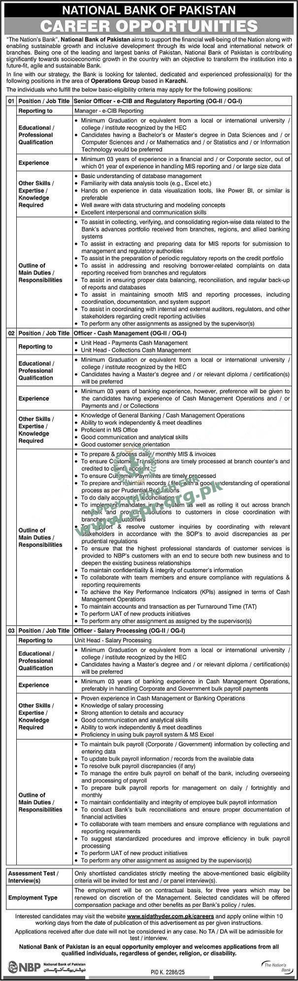 Govt. Dept : National Bank of Pakistan (NBP)