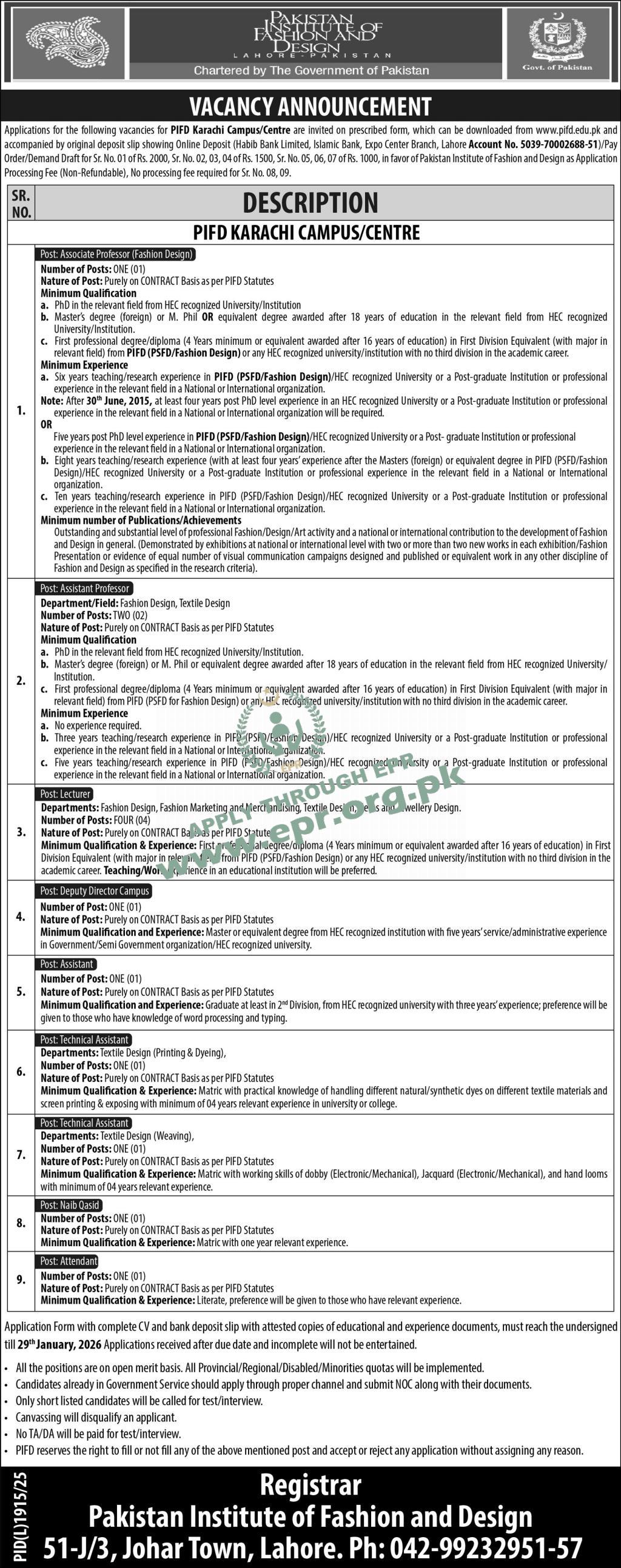 Govt. Dept : Pakistan Institute of Fashion & Design