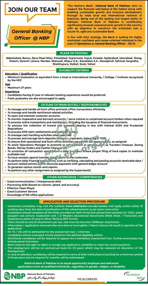 Govt. Dept : National Bank of Pakistan (NBP)