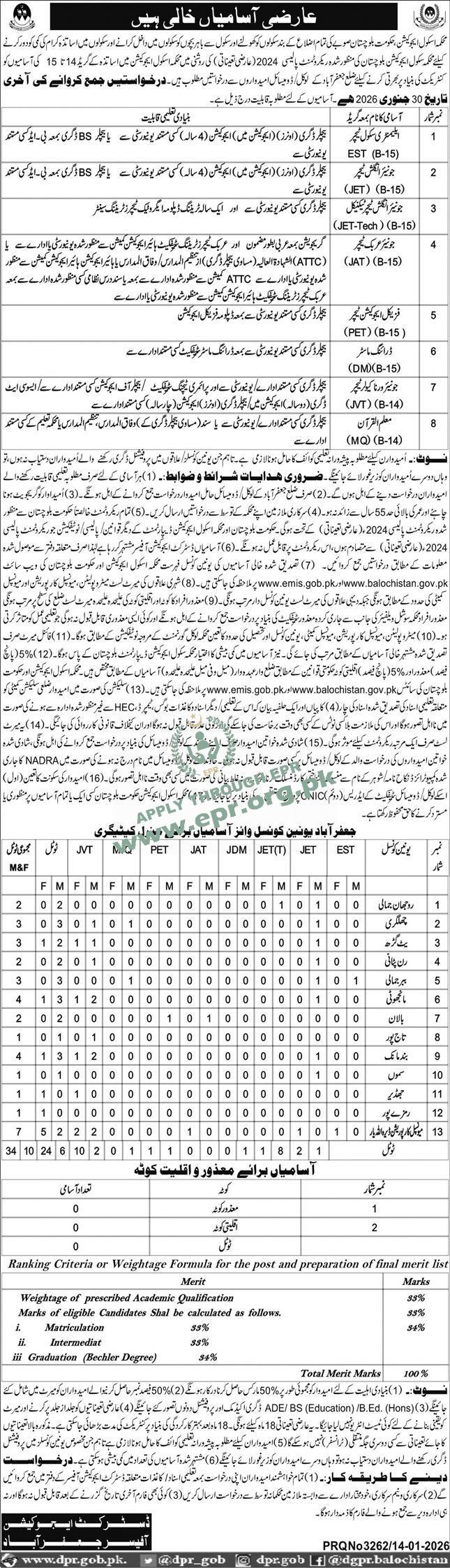 Govt. Dept : School Education Department, Balochistan