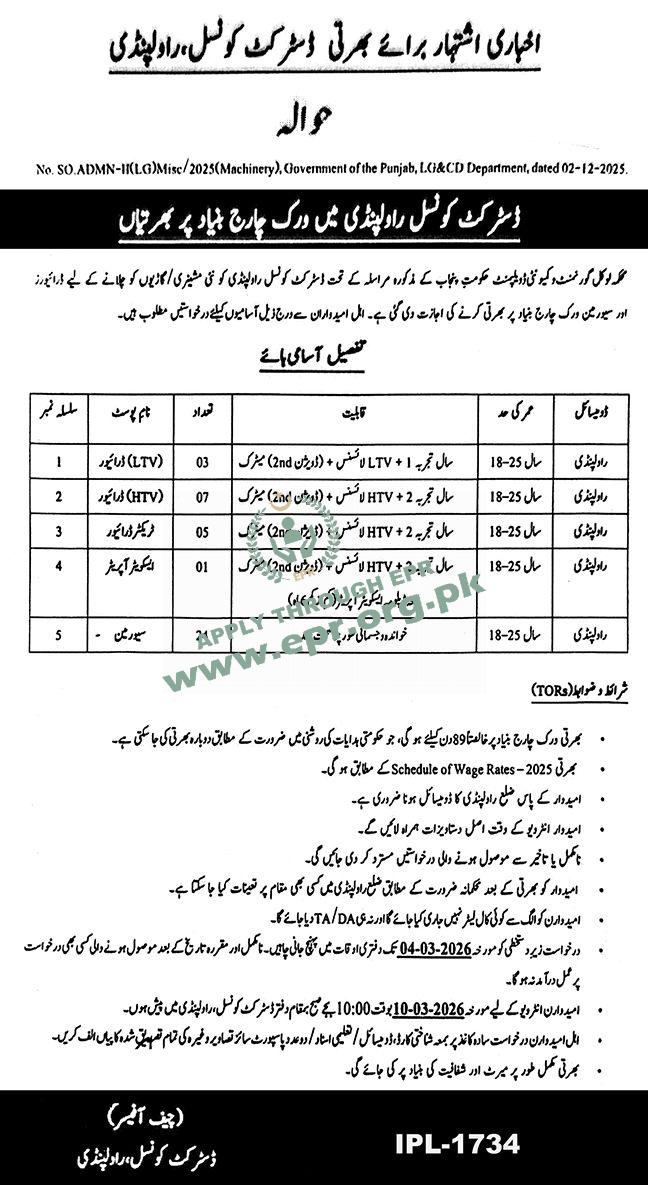 Govt. Dept : District Council Rawalpindi