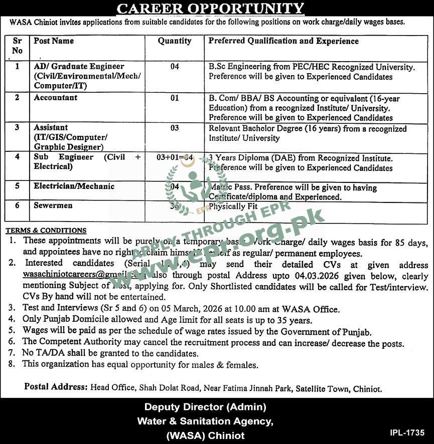 Govt. Dept : Water and Sanitation Agency, Chiniot