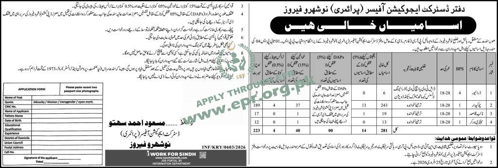 Govt. Dept : District Education Officer (Primary), Nausharo Feroze
