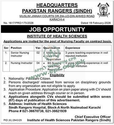 Govt. Dept : Institute of Health Sciences Pakistan Rangers (Sindh)