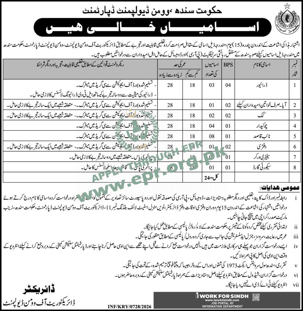 Govt. Dept : Women Development Department, Sindh