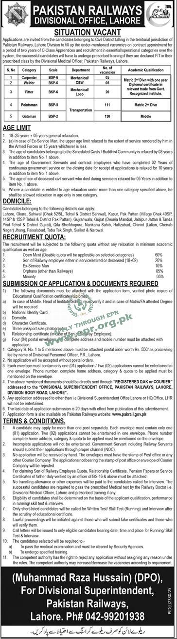 Govt. Dept : Pakistan Railways Divisional Office, Lahore