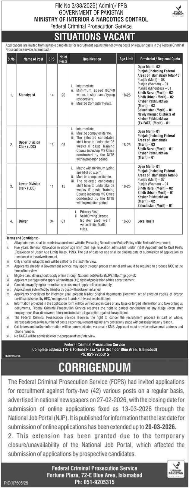 Req Qualification (Minimum) : HSSC/DAE/ A-level Degree