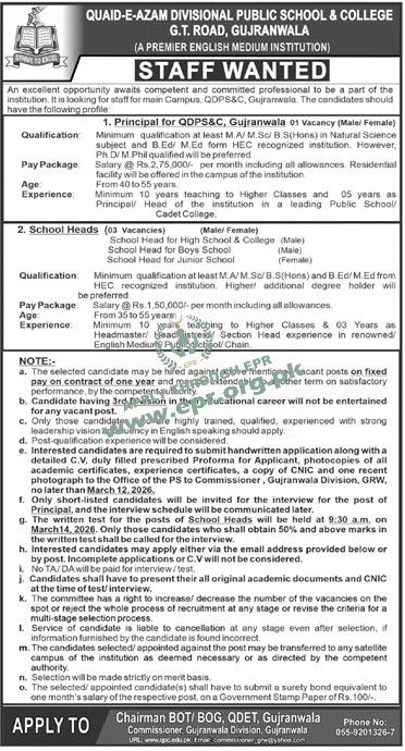 Govt. Dept : Quaid-e-Azam Divisional Public School & College, Gujranwala