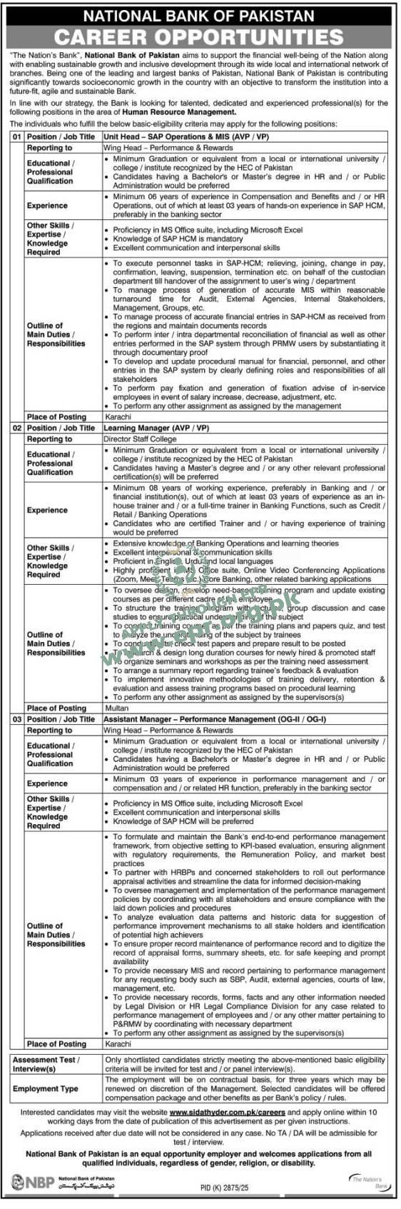 Govt. Dept : National Bank of Pakistan (NBP)