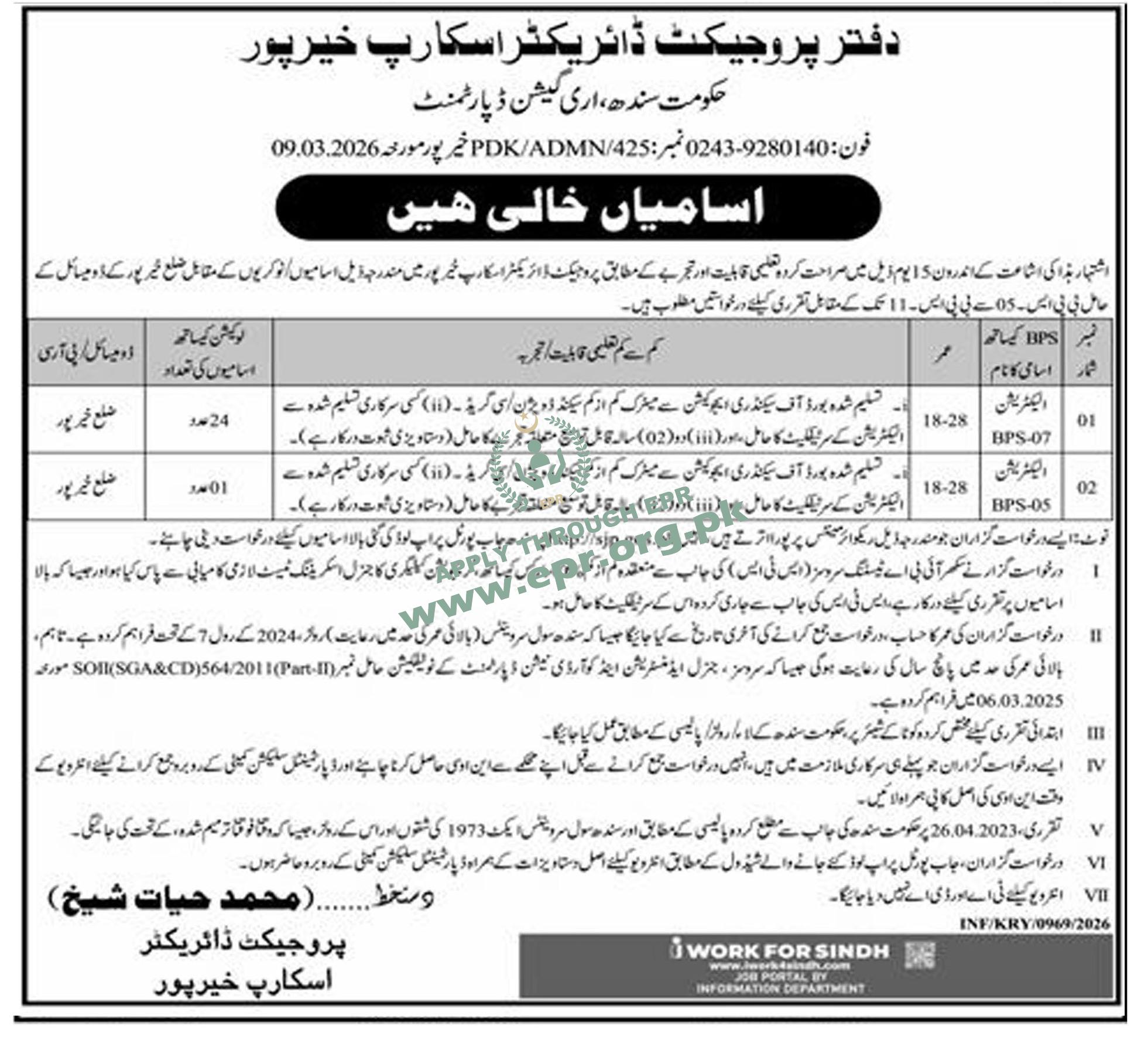 Govt. Dept : Irrigation Department (SCARP KHAIRPUR)