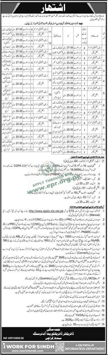 Govt. Dept : Directorate of Nursing Sindh, Health Department